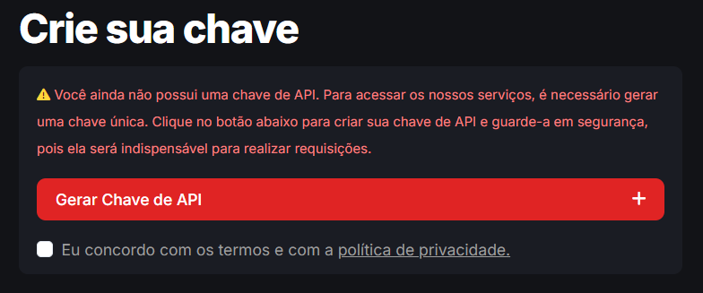 - Crie sua chave de API. Basta clicar em gerar chave e aguardar.