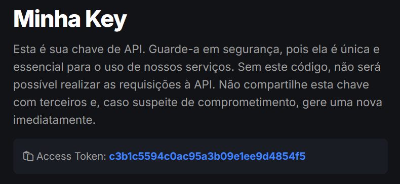- Copie sua KEY. Após gerar a chave, basta clicar em cima para copiar a KEY.